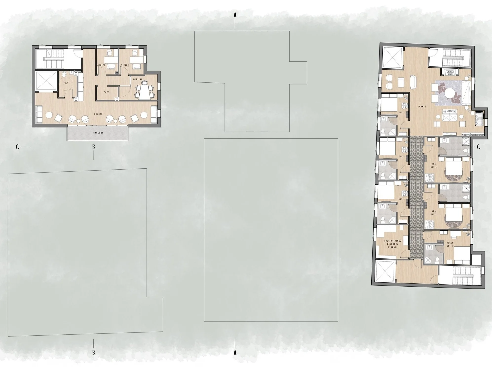 Direct access to nature and outdoor spaces adjacent to the suite.